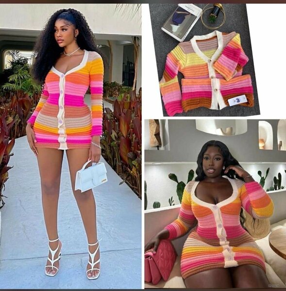 Robe moulante rayée multicolore