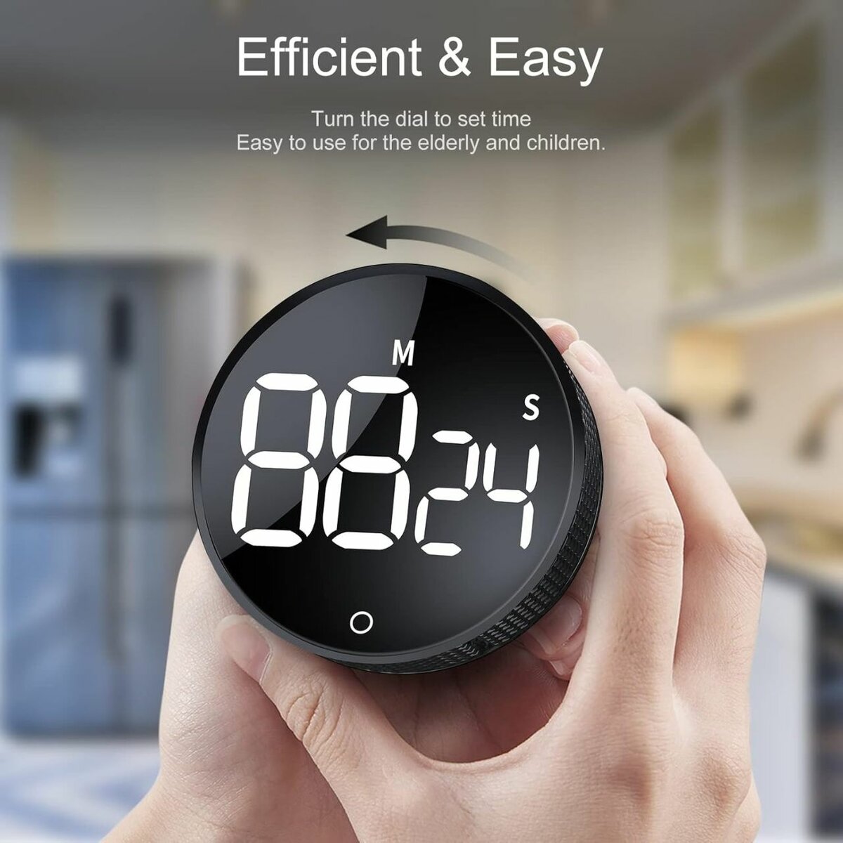 Facile à utiliser avec une main, ce minuteur numérique magnétique est idéal pour la cuisine et les tâches ménagères. Doté d'un écran lumineux réglable et d'un son ajustable, il convient aux enfants et aux personnes âgées. Fonctionne avec 3 piles AAA (non incluses).