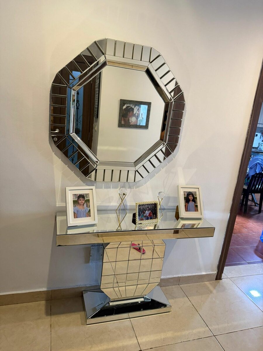 Ajoutez une touche d'élégance à votre intérieur avec ce miroir mural hexagonal. Sa structure moderne en segments réfléchissants crée un effet visuel saisissant, parfait pour les entrées ou salons modernes. Idéal pour apporter luminosité et style à n'importe quelle pièce.
