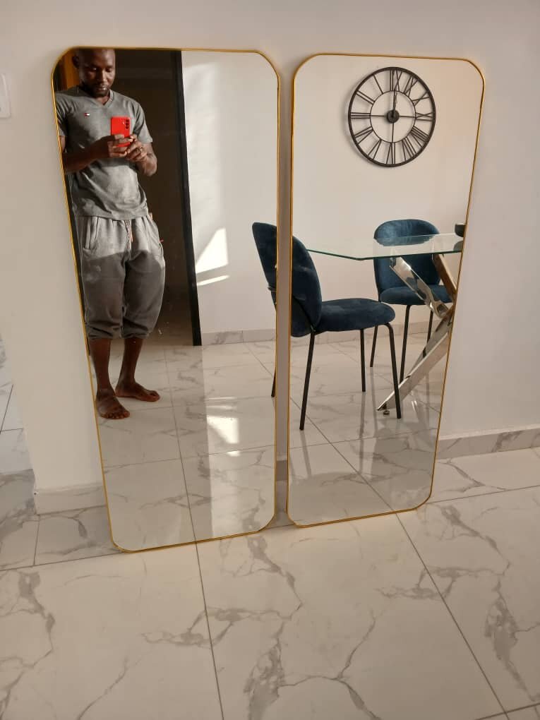 Ajoutez une touche d'élégance à votre intérieur avec ce miroir mural moderne au cadre doré. Parfait pour la chambre ou le salon, il apporte luminosité et profondeur à vos espaces.