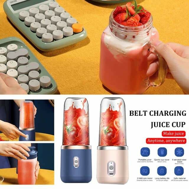 couleur rose avec 2 Tasses Mélangeur de fruits électrique portable, chargement USB, citron, jus de fruits