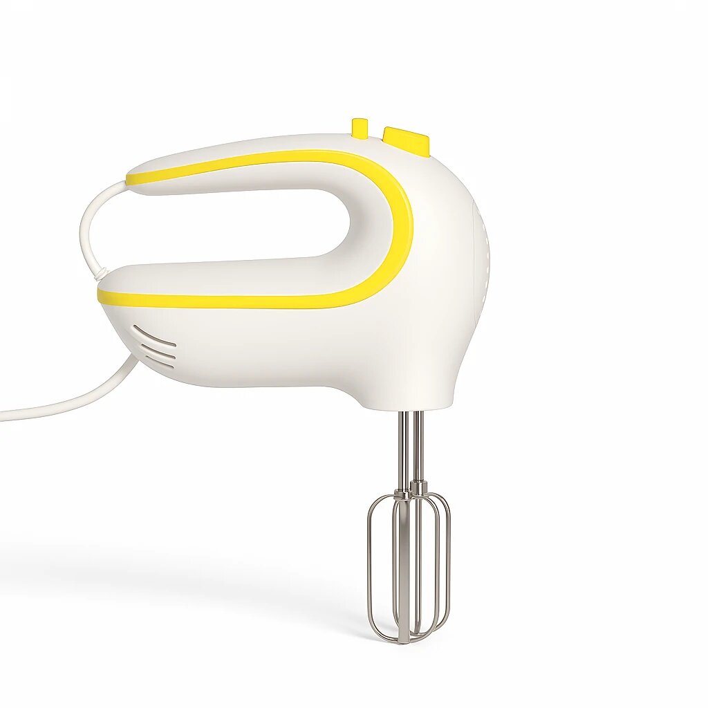 Découvrez ce mixeur électrique portable, parfait pour toutes vos recettes de pâtisserie et de cuisine. Compact et facile à utiliser, avec un design élégant en blanc et jaune. Idéal pour fouetter, battre et mélanger en un rien de temps. Un indispensable pour chaque cuisine moderne!