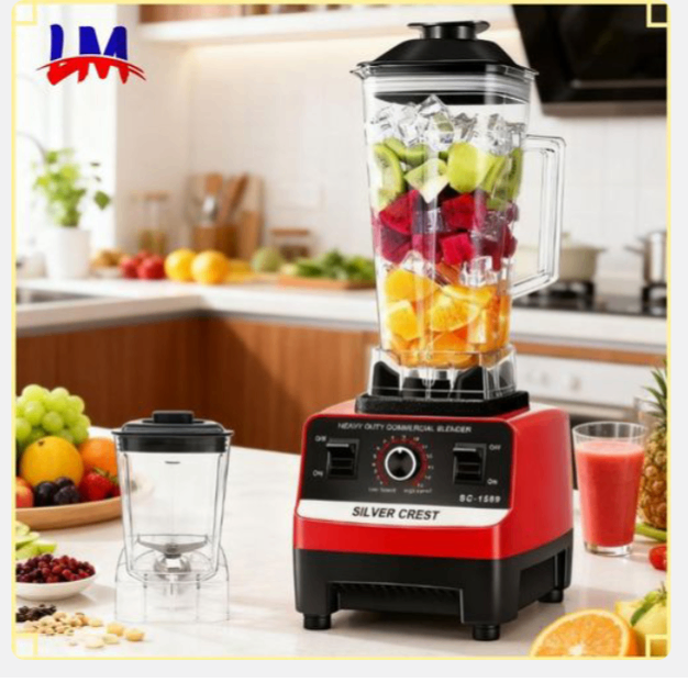 Découvrez le mixeur Silver Crest SC-1589, parfait pour smoothies et soupes. Avec ses bases antidérapantes et son connecteur en alliage d'aluminium, il offre robustesse et efficacité. Inclus : deux cups de grande et petite capacité, tige mélangeuse et couvercles.