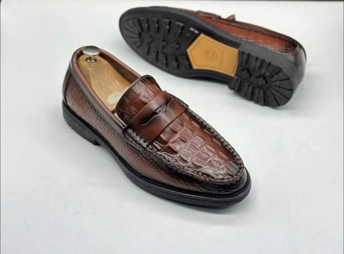 Optez pour l'élégance avec ces mocassins en cuir à motif crocodile. Idéaux pour les occasions formelles ou décontractées, ils ajoutent une touche de luxe à votre garde-robe. Confortables et stylés, ces chaussures sont parfaites pour l'homme moderne.