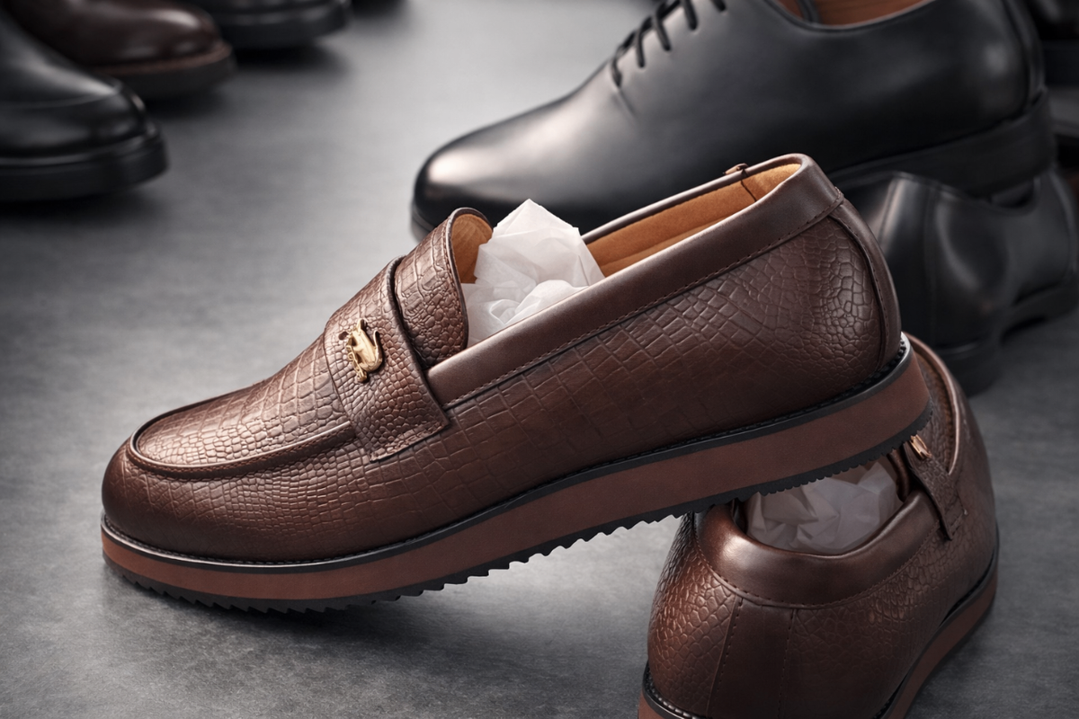 Découvrez ces mocassins en cuir marron, parfaits pour un look chic et casual. Avec leur design texturé et leur confort exceptionnel, ils sont idéaux pour le bureau ou une sortie en ville. Un incontournable du vestiaire masculin moderne.