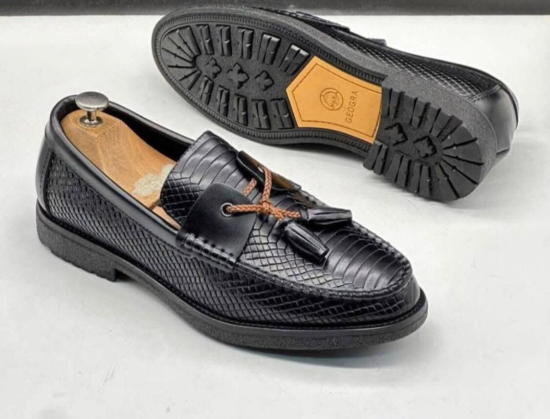Découvrez l'élégance avec nos mocassins en cuir noir texturés. Parfaits pour des tenues formelles ou décontractées, ils offrent un confort optimal et un style intemporel. Idéal pour un look sophistiqué et moderne en toute occasion.