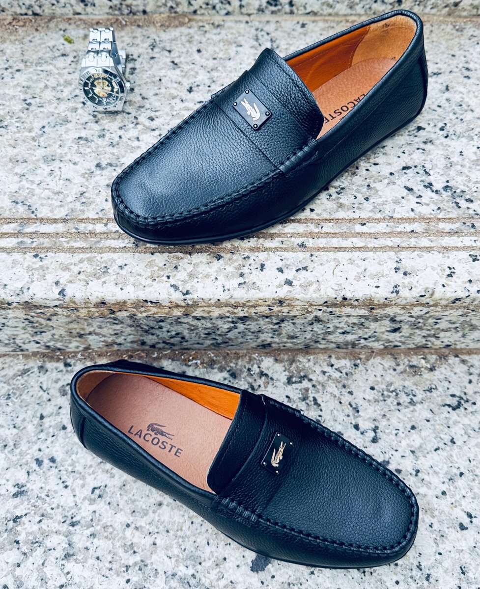 Optez pour ces élégants mocassins en cuir noir de Lacoste, parfaits pour un style distingué et confortable. Conçus avec soin, ils offrent un confort optimal grâce à leur doublure douce. Idéal pour une journée au bureau ou une sortie décontractée. Un choix incontournable pour l'homme moderne recherchant élégance et qualité.