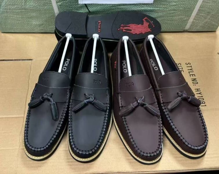 Adoptez un look raffiné avec ces mocassins en cuir Polo, parfaits pour les hommes modernes. Conçus avec soin, disponibles en noir classique et marron chic, et ornés de pompons élégants. Idéals pour les tenues formelles et décontractées.