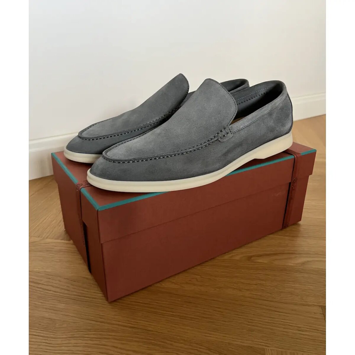 Découvrez ces élégants mocassins en daim noir et gris conçus pour les hommes. Parfaits pour un look décontracté ou élégant, ils offrent confort et style. Leur semelle blanche ajoute une touche moderne, idéale pour toutes les occasions.
