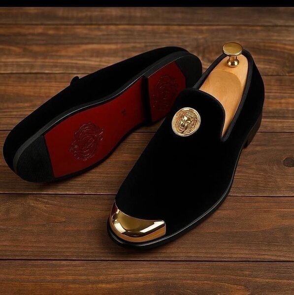 Élevez votre style avec ces mocassins en velours noir ornés de détails dorés élégants. Idéal pour des événements formels ou des soirées, ce design offre confort et sophistication. La finition dorée ajoute une touche de luxe qui captivera tous les regards. Parfait pour l'homme moderne en quête d'élégance intemporelle. Facile à porter, ils complèteront à merveille vos tenues habillées.