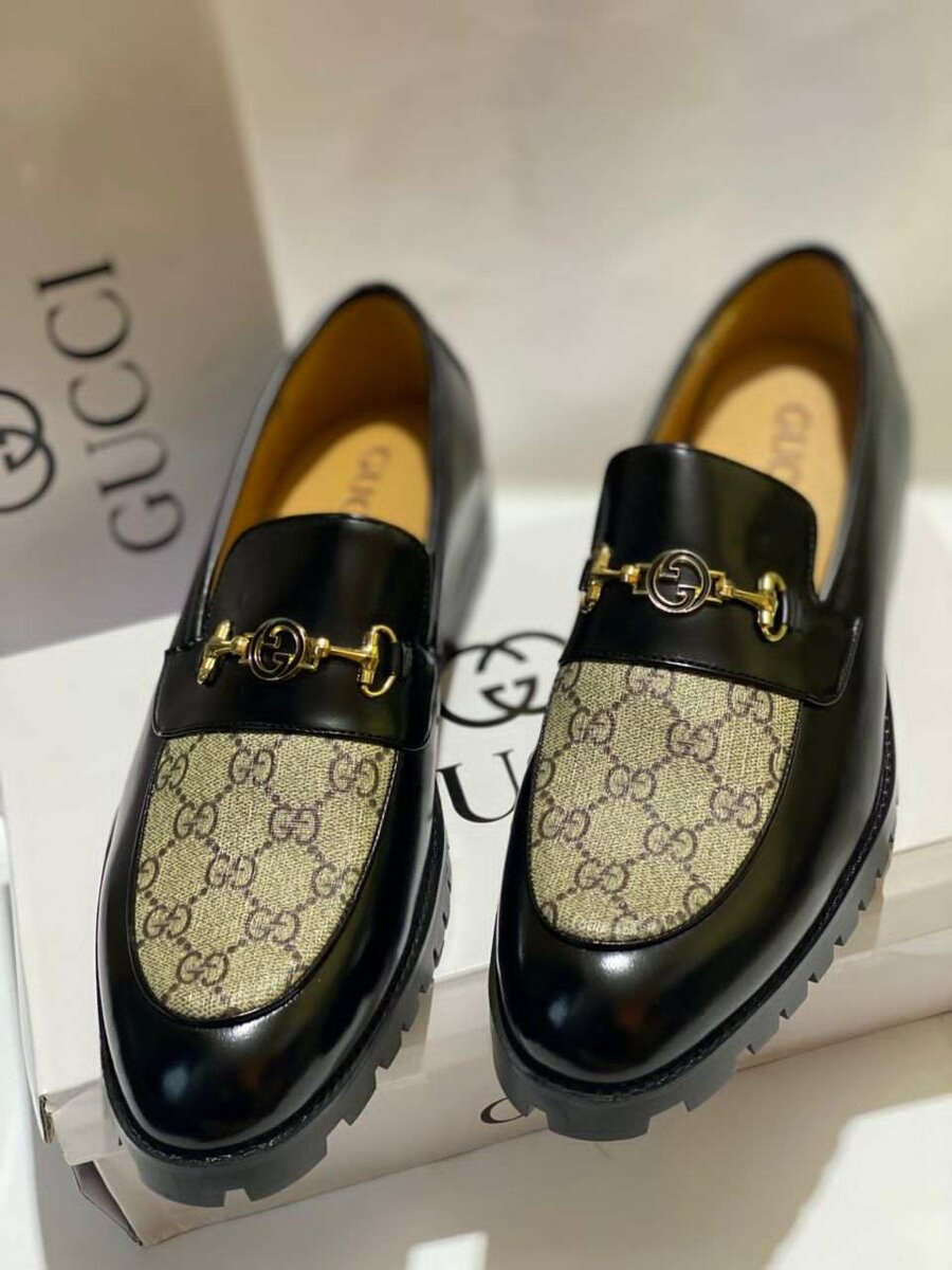 Découvrez l'élégance intemporelle des mocassins Gucci en cuir noir avec motif classique. Idéals pour un look chic et sophistiqué, ces mocassins offrent confort et style durable. Parfait pour les occasions formelles comme décontractées.