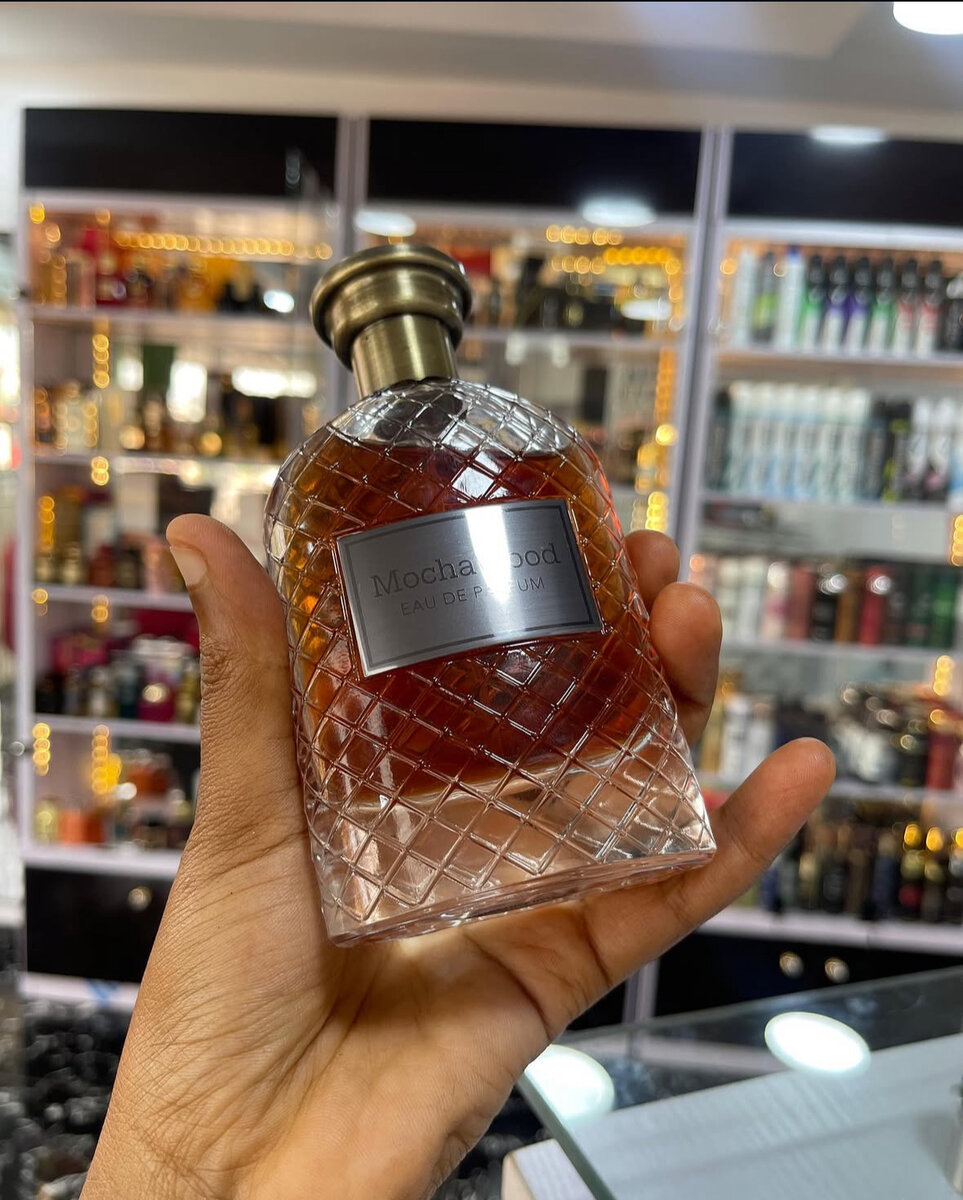 Découvrez MochaWood, un parfum luxueux pour homme. Un mélange envoûtant de notes boisées et chocolatées, parfait pour les soirées élégantes. Emballage élégant en verre taillé avec une finition métallique. Parfum intense et durable pour les hommes sophistiqués.
