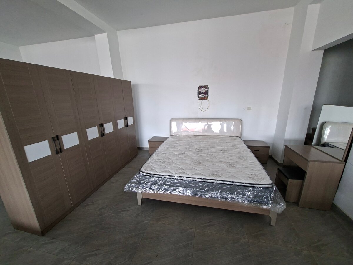 Elevate your bedroom with this sleek furniture set, including a bed, wardrobe, and dresser. Made from high-quality materials for durability and comfort.