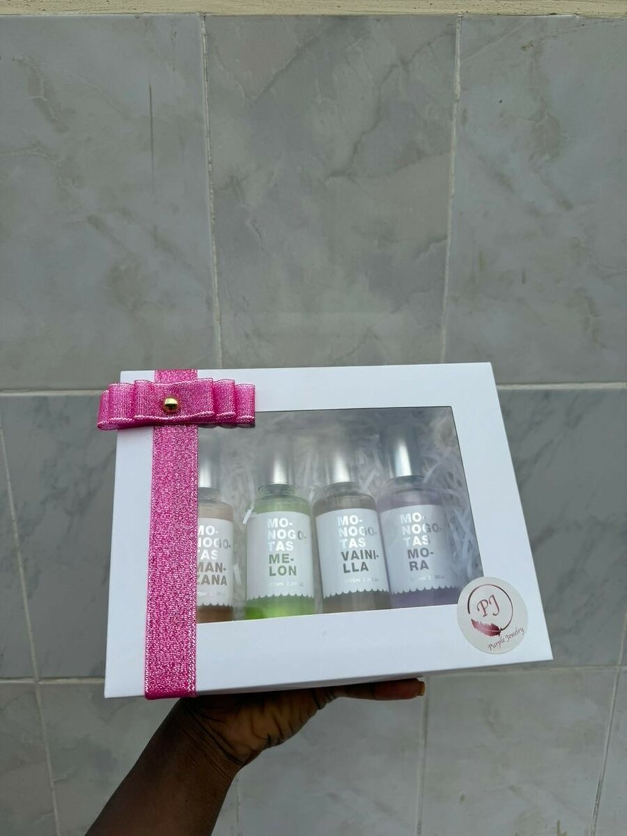 Four flavored Monogotas perfume gift set for her, very simple and beautiful gift set for a loved one