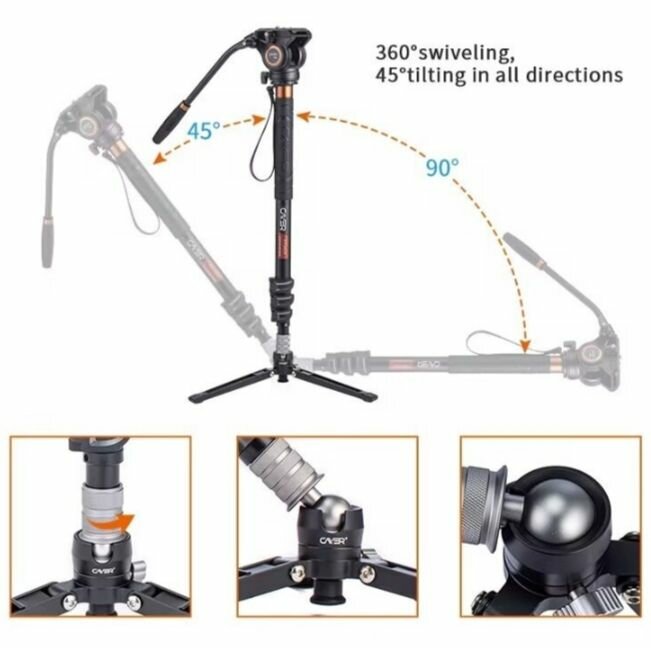 Monopode vidéo polyvalent avec rotation à 360° et inclinaison à 45° pour des vidéos fluides. Idéal pour les vidéastes et photographes. Construction robuste et facile à transporter, parfait pour des captations professionnelles.