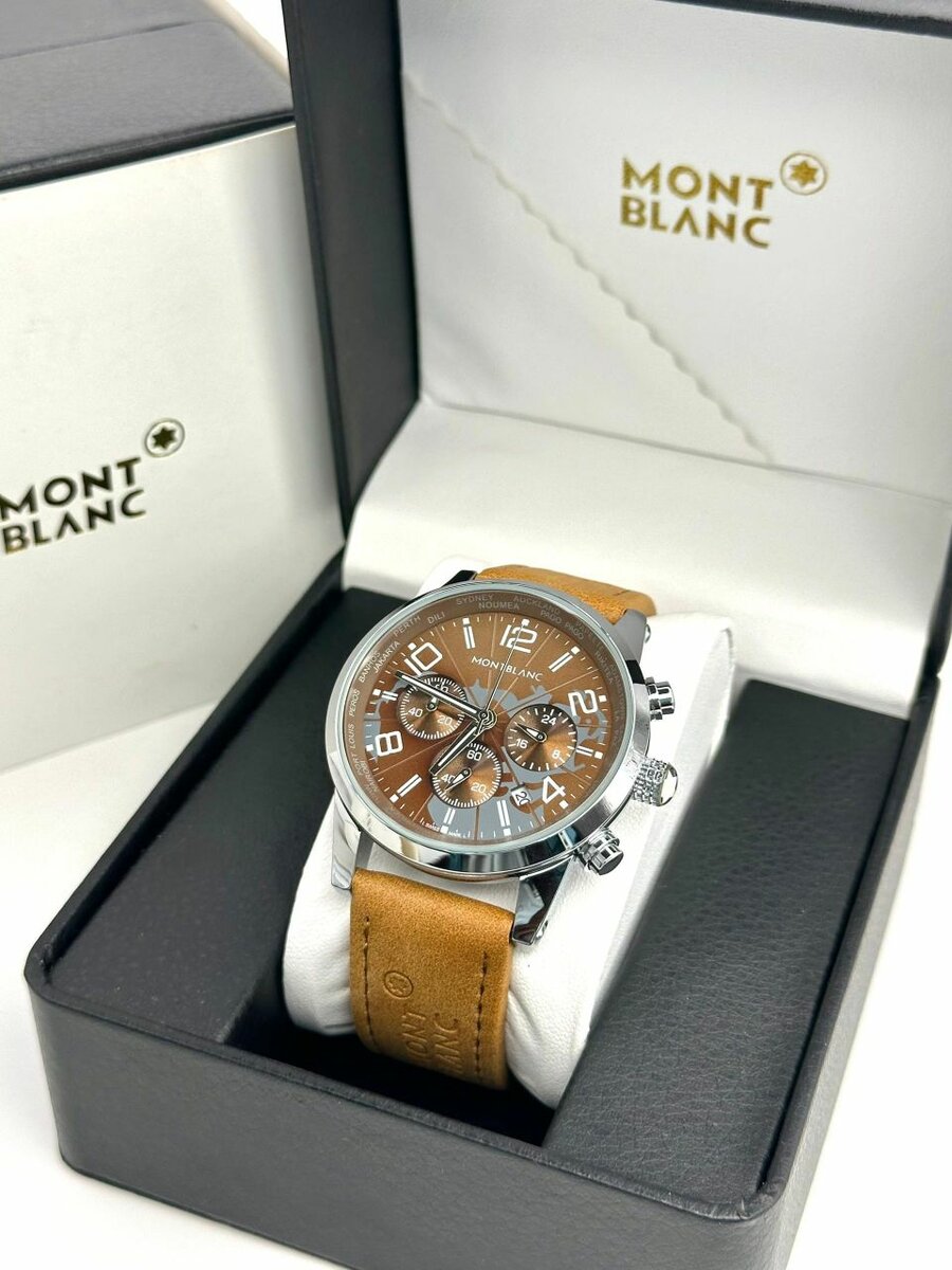 Découvrez la montre Montblanc pour homme, avec un élégant cadran brun et un bracelet en cuir marron. Un accessoire raffiné et robuste, idéal pour les hommes qui apprécient la précision et le style.
