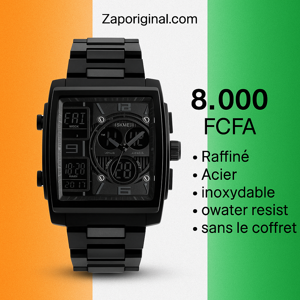 Montre élégante en acier inoxydable avec affichage numérique et analogique. Résistante à l'eau, idéale pour un style moderne et sophistiqué sans compromis sur la qualité. Parfait pour les événements ou un usage quotidien.