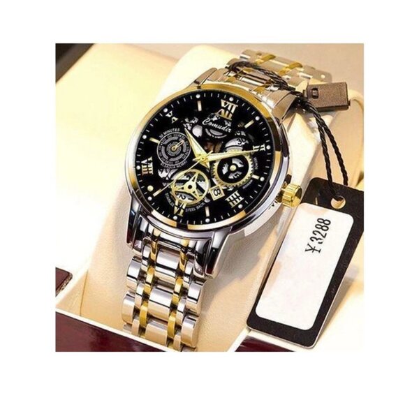 Découvrez cette montre automatique, parfaite pour une élégance quotidienne. Avec son bracelet en acier inoxydable bicolore et son cadran noir sophistiqué, elle ajoute une touche d'élégance à chaque tenue. Idéale pour les occasions formelles et décontractées, elle est également dotée d'un affichage de la date. Un choix parfait pour les amateurs d'horlogerie et de style raffiné.