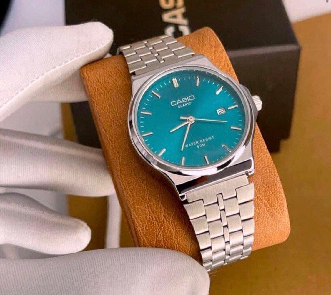 Cette élégante montre Casio pour homme est dotée d'un bracelet en acier inoxydable et d'un cadran turquoise vif. Parfaite pour un look professionnel et moderne, elle est aussi résistante à l'eau. Idéale pour toutes les occasions, sa précision et son design intemporel en font un choix incontournable.