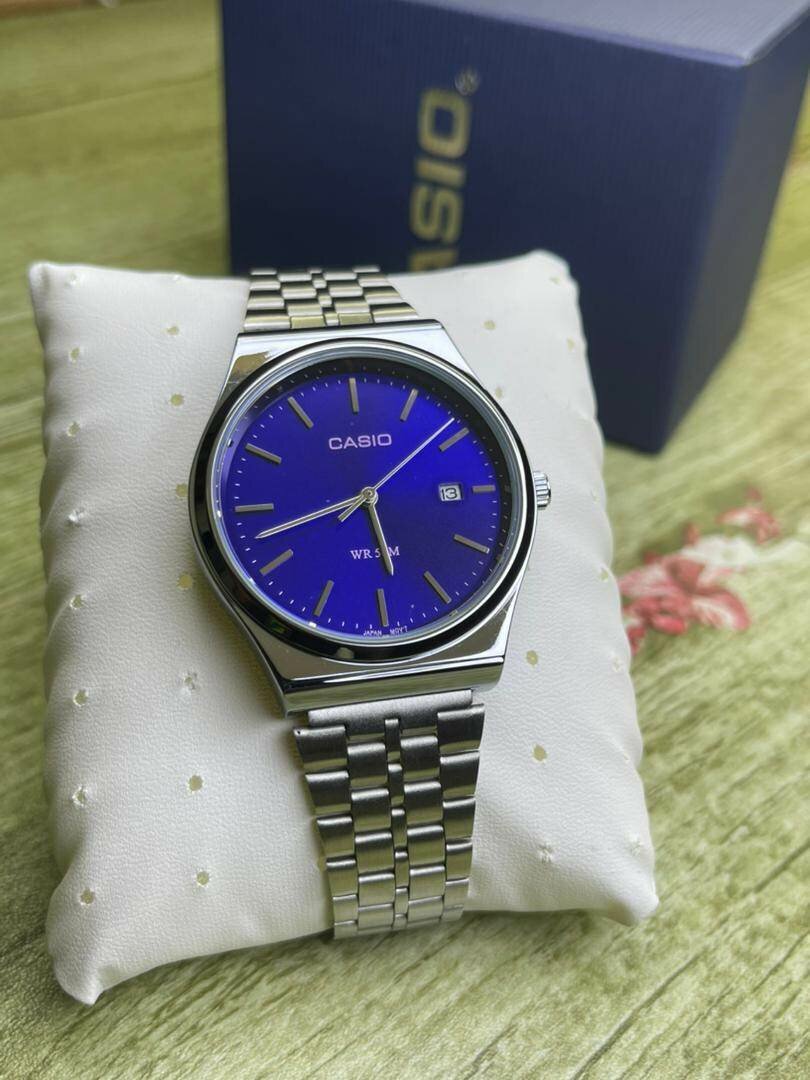Élégante montre pour homme de Casio avec bracelet en acier inoxydable. Idéale pour un look sophistiqué au quotidien, elle est également étanche et possède un affichage de date pratique. Parfaite pour toutes les occasions.