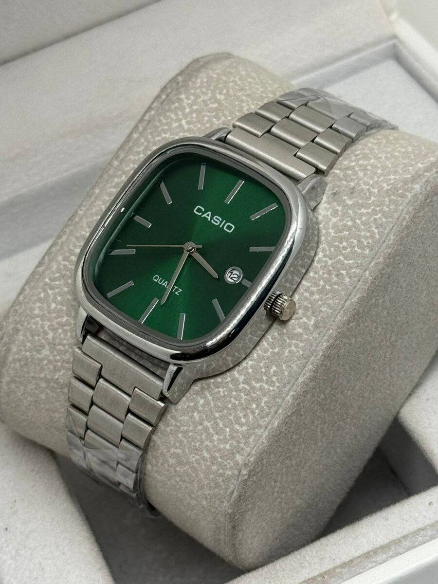 Découvrez cette élégante montre Casio avec cadran vert et bracelet en acier inoxydable. Parfait pour un style moderne et sophistiqué. Un choix idéal pour toute occasion, résistant et intemporel.