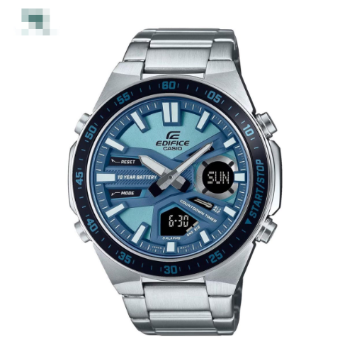 montre chrome Casio avec cadran bleu