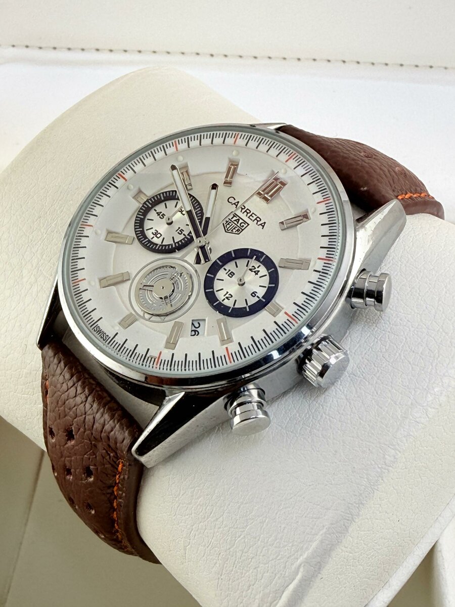 Élégante montre Carrera avec bracelet en cuir véritable, parfaite pour un style raffiné. Dotée de fonctions chronographe sophistiquées et d'un design intemporel, elle s’adapte à toutes les occasions, qu'elles soient formelles ou décontractées. Un choix idéal pour les passionnés d'horlogerie recherchant précision et élégance.