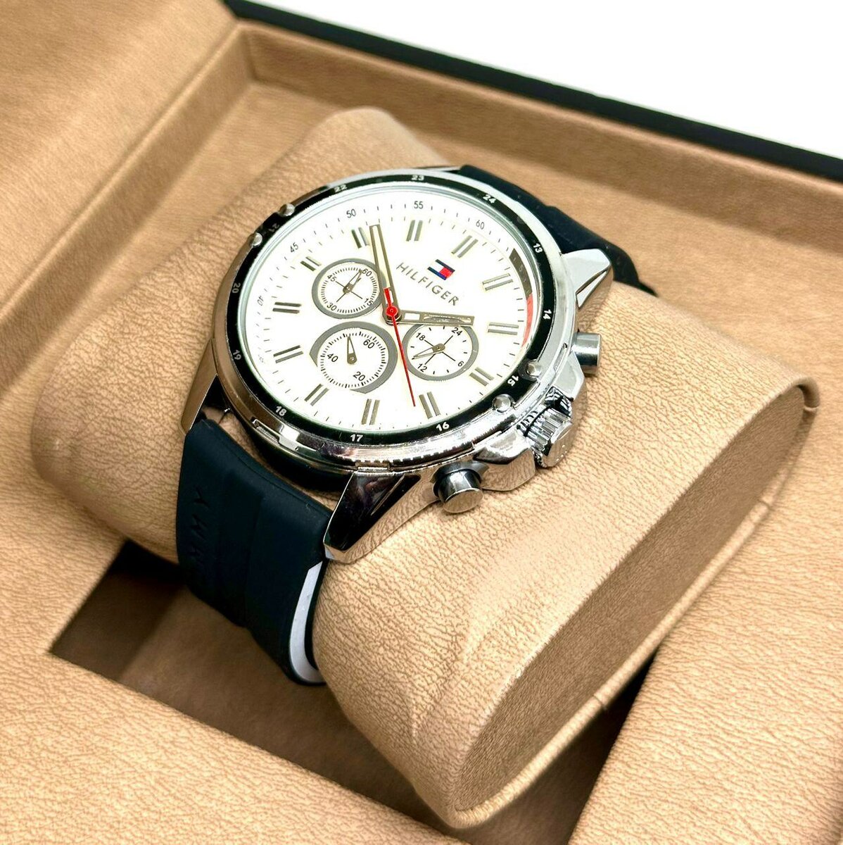 Découvrez notre montre chronographe élégante, un choix parfait pour les hommes modernes. Avec son boîtier argenté et son bracelet en cuir, elle se distingue par son design sophistiqué. Idéale pour le bureau ou une sortie décontractée, elle allie style et fonctionnalité avec précision.