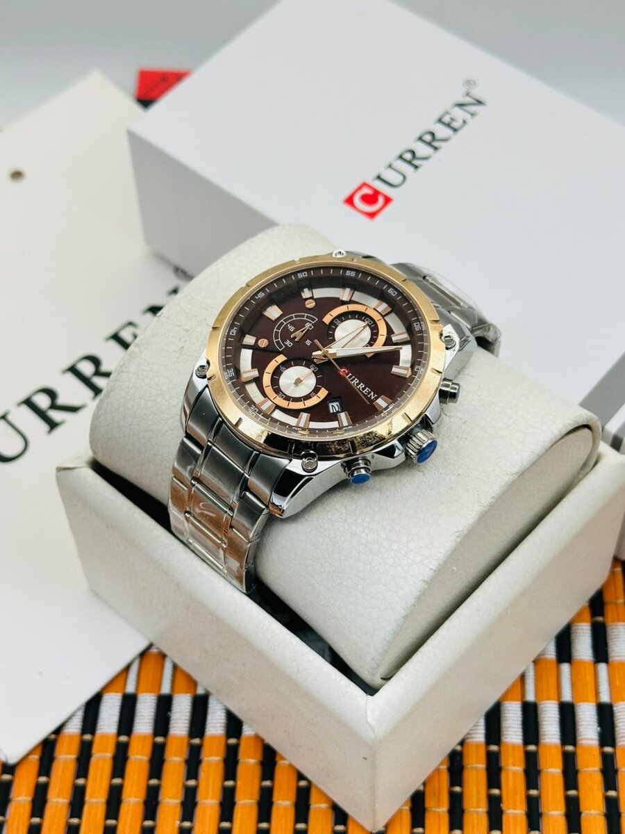 Découvrez la montre chronographe CURREN pour homme, alliant élégance et fonctionnalité. Son design en acier inoxydable et son cadran sophistiqué font de cette pièce un choix idéal pour les occasions formelles et quotidiennes. Parfait pour ajouter une touche d'élégance à n'importe quelle tenue.