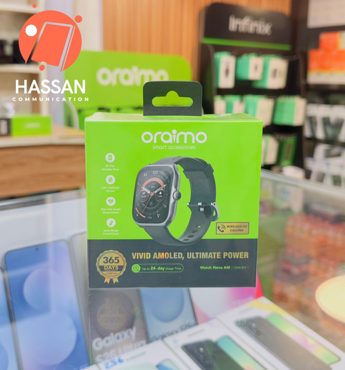 Découvrez la puissance ultime avec la montre connectée Oraimo. Écran AMOLED pour des couleurs vives, autonomie de 24 jours et des fonctionnalités avancées pour une vie active. Parfaite pour suivre vos performances sportives et rester connecté au quotidien.