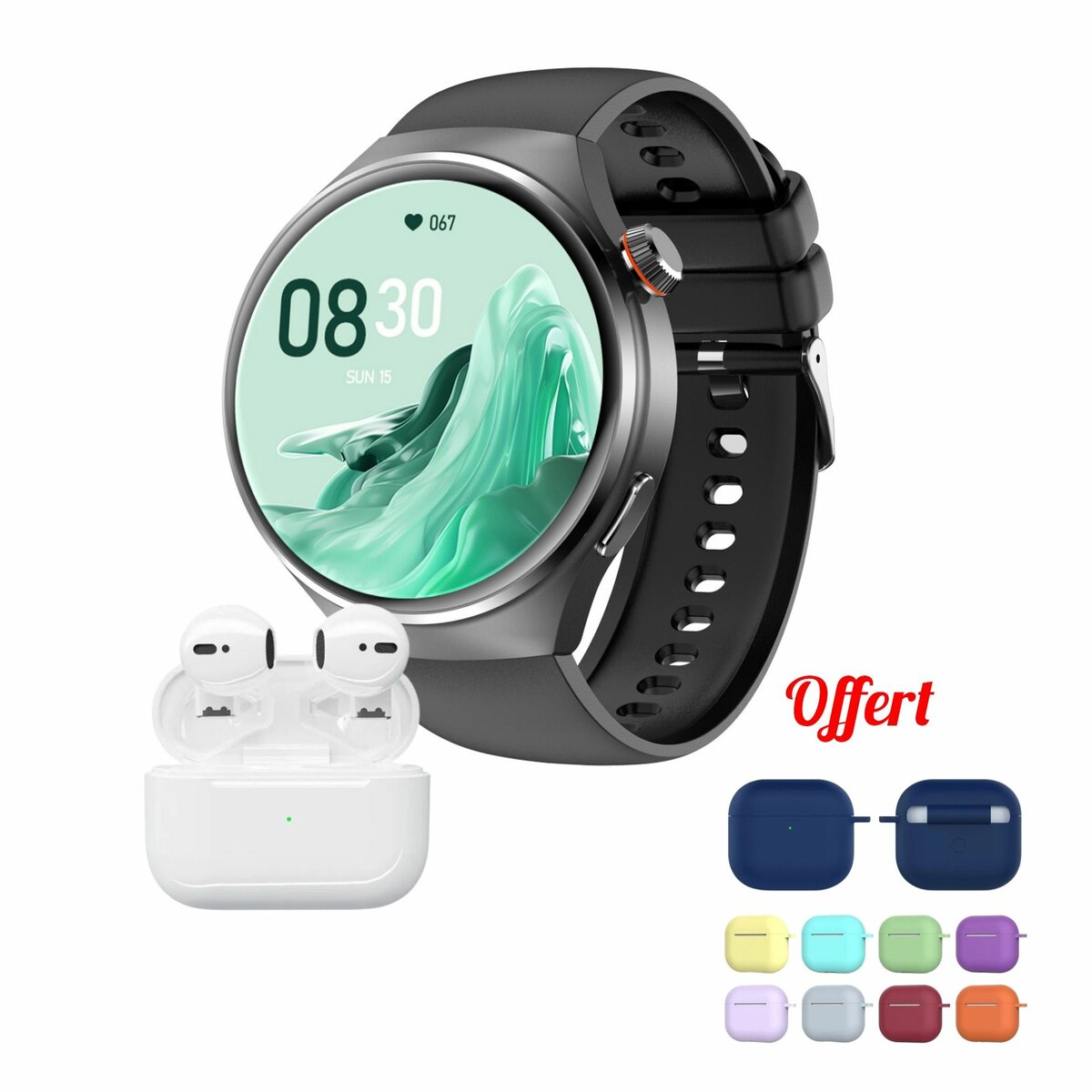 1 écouteurs pro 5s 1 montre connectée : appel, SMS, notifications WhatsApp Bonne autonomie