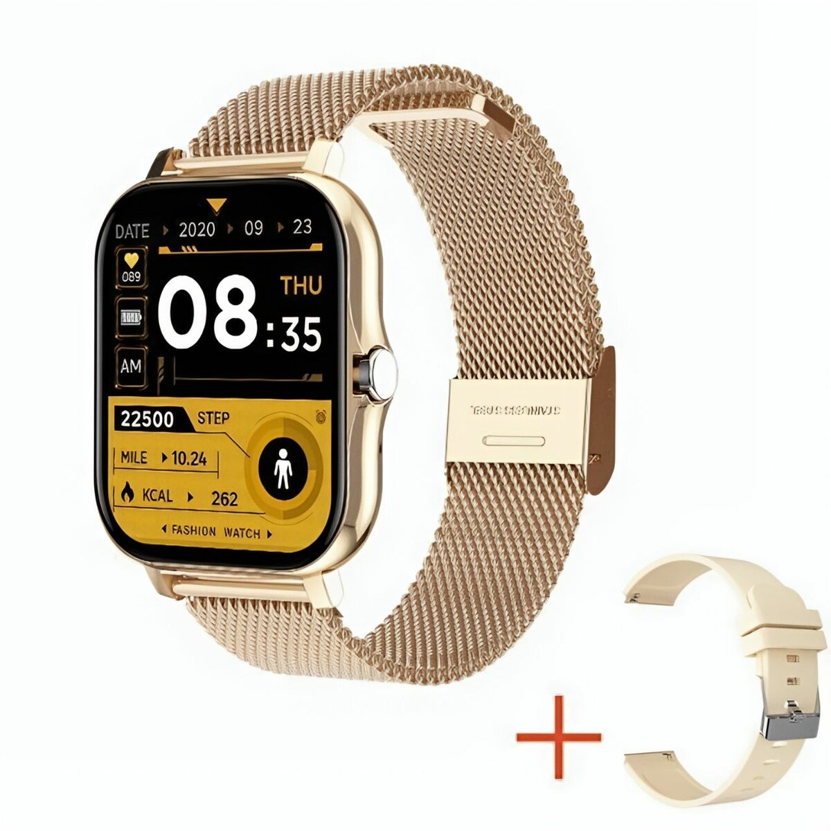 Découvrez cette élégante montre connectée en or rose avec un bracelet en maille. Son design moderne et ses fonctionnalités avancées en font le choix idéal pour suivre votre activité quotidienne et rester connecté. Parfaite pour les amateurs de technologie et de style.