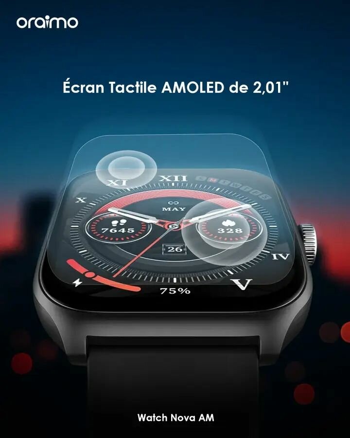 Découvrez la montre connectée Oraimo Watch Nova AM avec un écran tactile AMOLED de 2,01". Parfaite pour le sport et le quotidien, elle offre un design élégant et des fonctionnalités avancées.