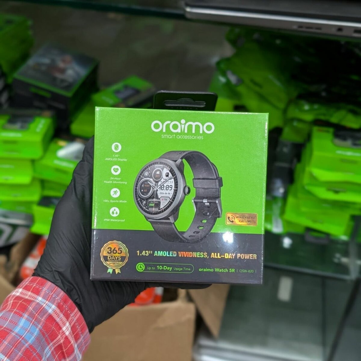 Découvrez la montre intelligente oraimo Watch 5R avec écran AMOLED 1,43", suivi de santé 24h/24, waterproof IP68, appels HD sans fil et plus de 100 modes sport. Autonomie de 10 jours.