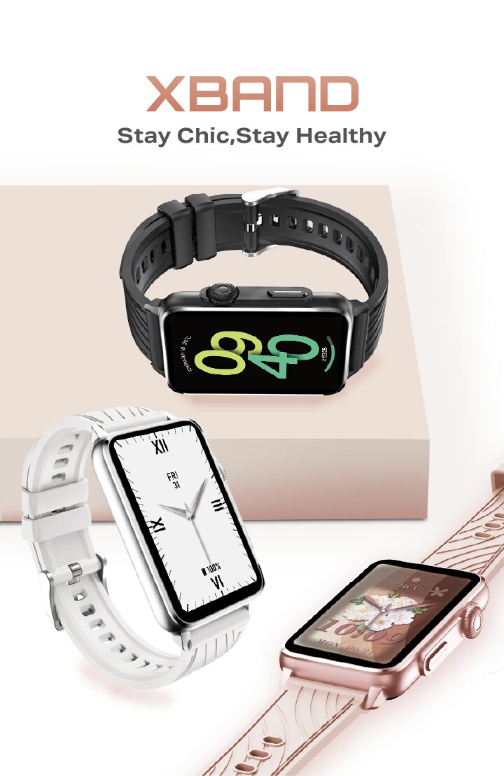 Découvrez la montre connectée XBand, parfaite pour un style chic et une vie saine. Suivi de fitness, notifications, et plus, avec un design élégant. Idéale pour la vie quotidienne ou les séances de sport.