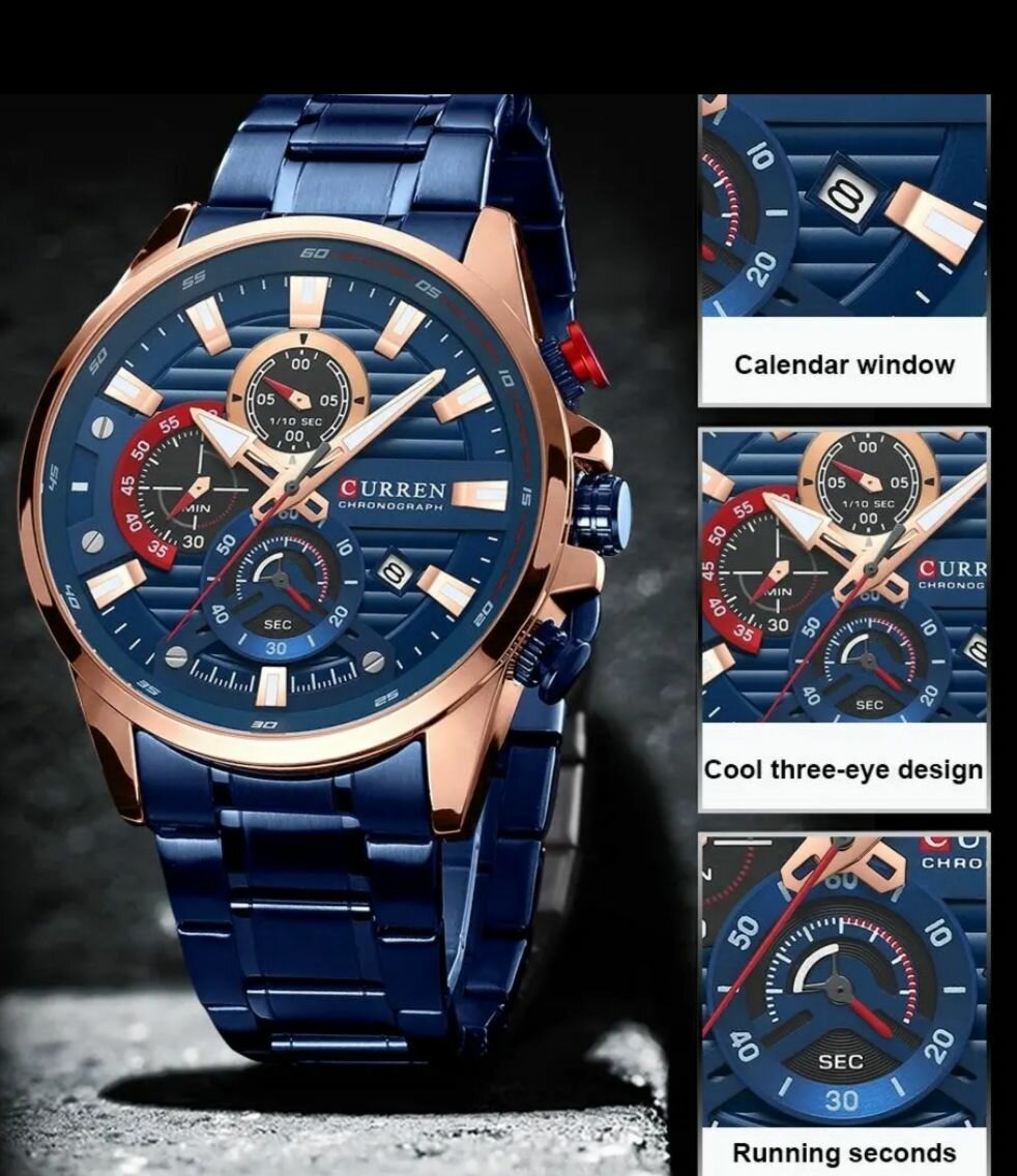 Bracelet en acier inoxydable, grand écran, horloge a quartz pointeur lumineuse, analogique , chronographe, calendrier moderne fond de cette montre un accessoire idéal pour les hommes actifs. Étanche et résistante, elle convient pour des occasions variées.