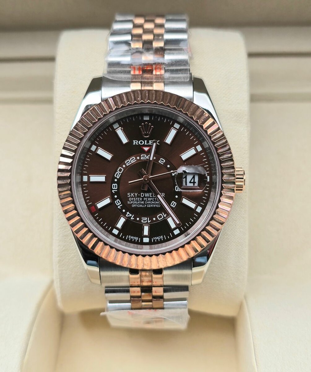Découvrez cette montre de luxe au design raffiné, combinant acier inoxydable et accents cuivrés pour une élégance intemporelle. Dotée d'un affichage précis et de fonctionnalités avancées, elle est idéale pour l'homme moderne souhaitant allier style et performance. Parfaite pour toutes les occasions, de la réunion d'affaires aux événements formels. Un choix exceptionnel pour rehausser votre poignet.