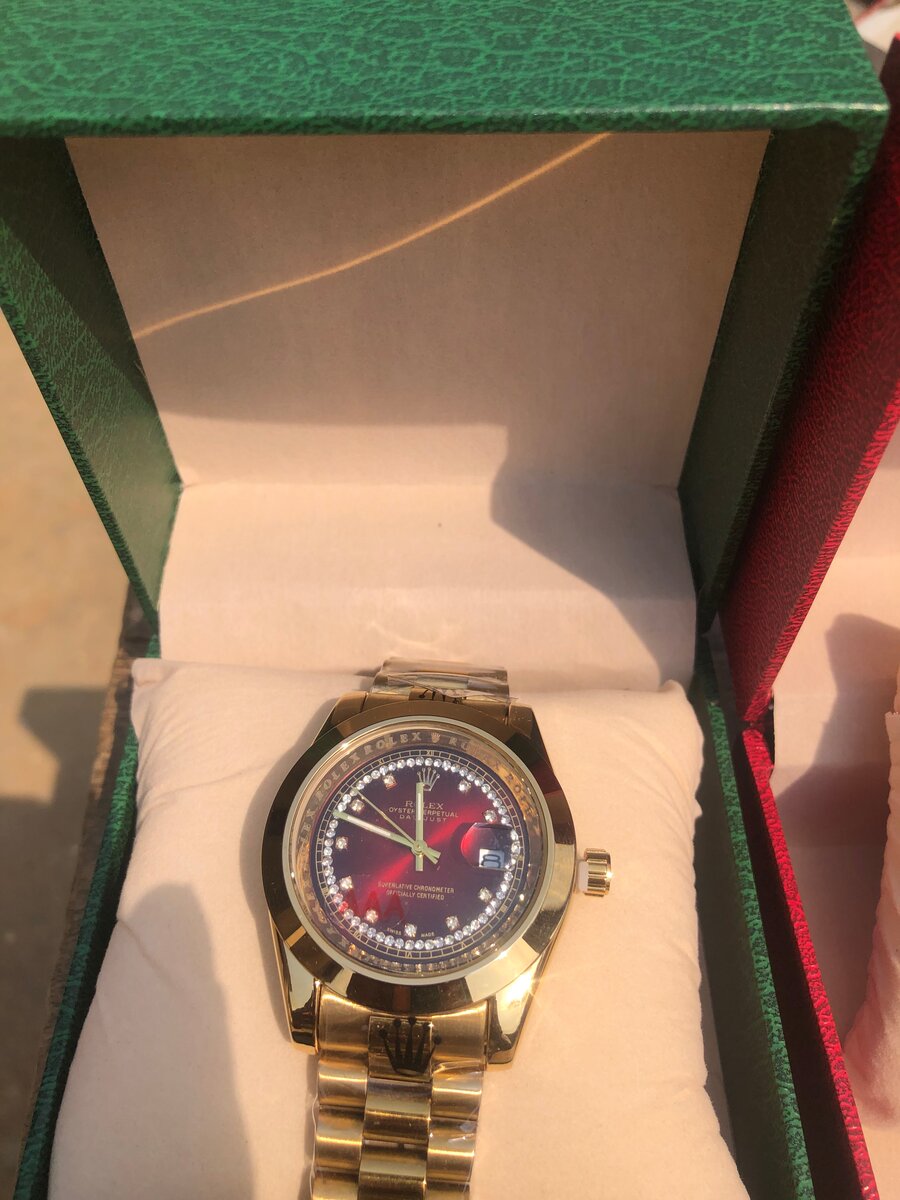 Découvrez cette montre de luxe dorée, dotée d'un cadran incrusté de pierres étincelantes. Parfaite pour ajouter une touche d'élégance à votre tenue, elle est idéale pour les occasions spéciales ou une utilisation quotidienne. Un choix raffiné pour ceux qui apprécient le style et la qualité.