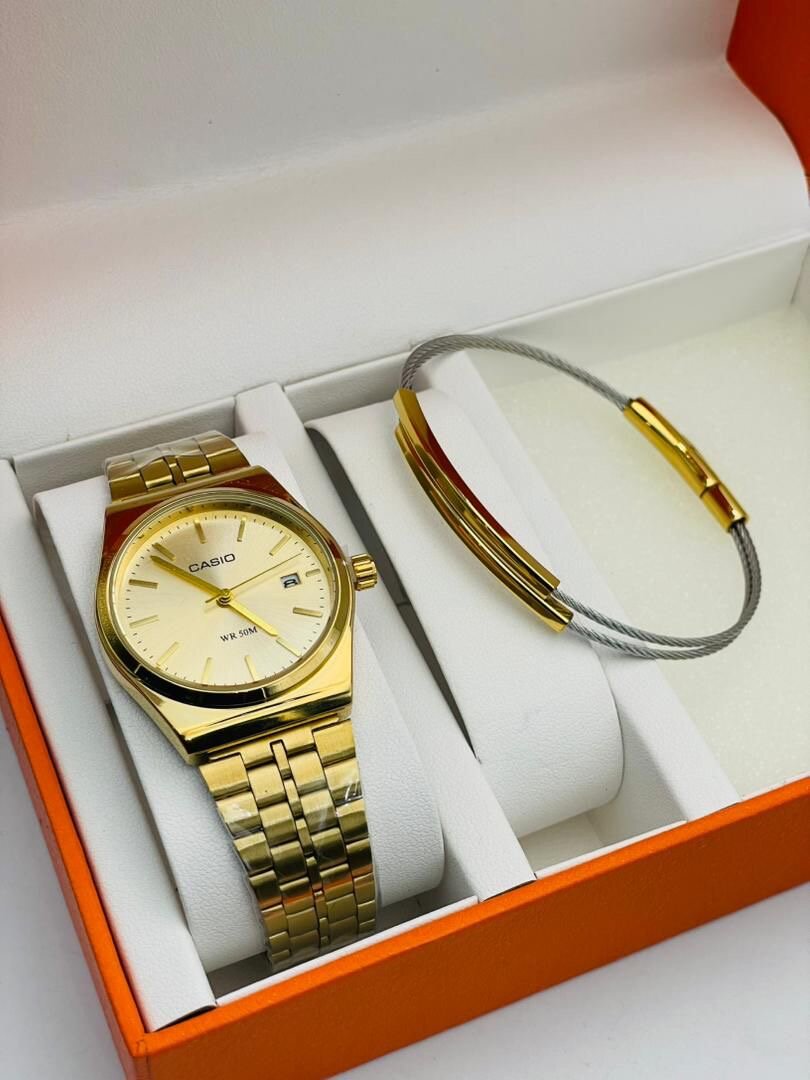 Offrez-vous l'élégance intemporelle avec cette montre dorée Casio accompagnée d'un bracelet assorti. Son design raffiné et son bracelet confortable la rendent idéale pour toutes les occasions. Un cadeau parfait pour vous-même ou un être cher qui apprécie le style et la fonctionnalité.