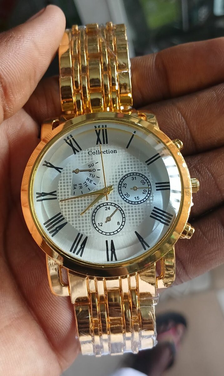 Optez pour cette montre dorée élégante au design classique. Parfaite pour ajouter une touche de luxe à n'importe quelle tenue. Dotée d'un cadran avec chiffres romains et de multiples fonctions, elle offre élégance et fonctionnalité. Idéal pour des occasions formelles ou un usage quotidien. Un choix raffiné pour l'homme moderne.