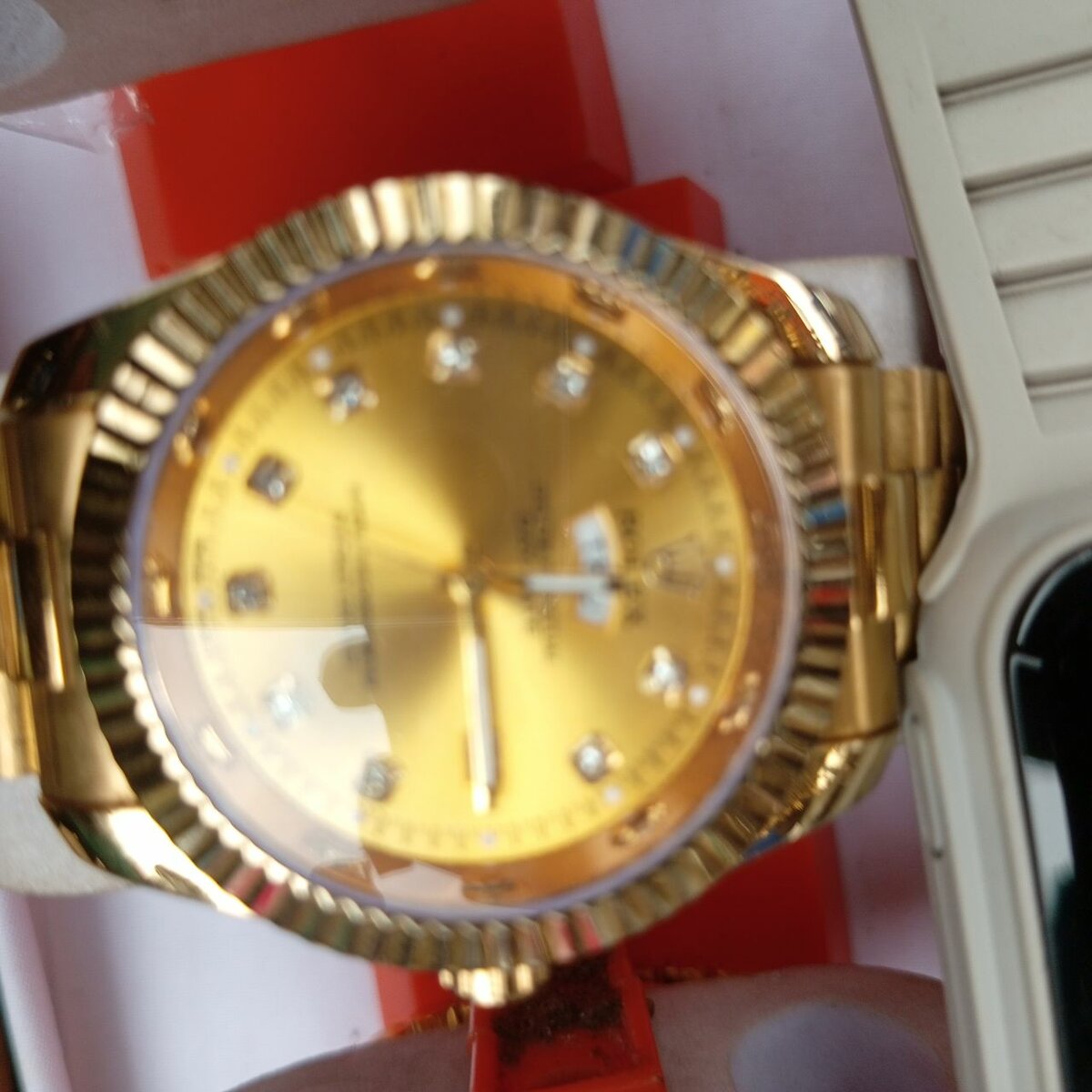 Optez pour cette montre dorée étincelante, idéale pour les occasions spéciales. Son design raffiné avec des détails brillants en fait un accessoire de luxe. Parfaite pour compléter votre tenue avec une touche élégante.