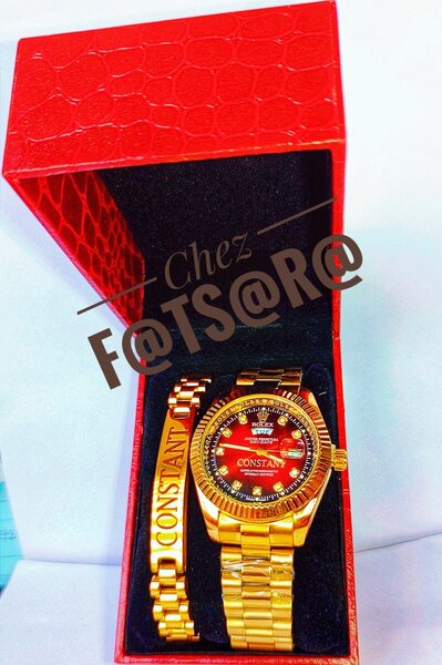 Profitez d'une montre dorée haut de gamme avec bracelet assorti et pendentif chic. Idéal pour compléter votre tenue ou offrir en cadeau. Design classique et sophistiqué qui attire tous les regards.