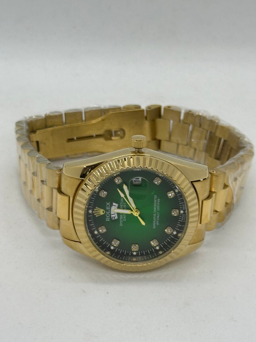 Élégante montre dorée avec cadran vert, parfaite pour les occasions spéciales. Un choix sophistiqué pour l'homme moderne cherchant à allier style et fonctionnalité.