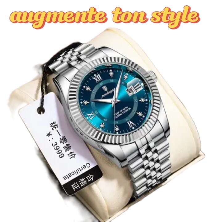 Découvrez notre montre élégante pour homme en acier inoxydable. Dotée d'un superbe cadran bleu et d'un affichage de date, elle allie style et fonctionnalité. Parfaite pour toutes occasions, cette montre résiste à l'épreuve du temps et complétera idéalement votre tenue.