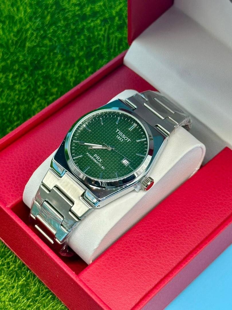 Découvrez l'élégance intemporelle avec la montre Tissot PRX en acier inoxydable. Son cadran vert foncé et son bracelet en métal ajoutent du style à toute tenue. Idéale pour les hommes modernes.