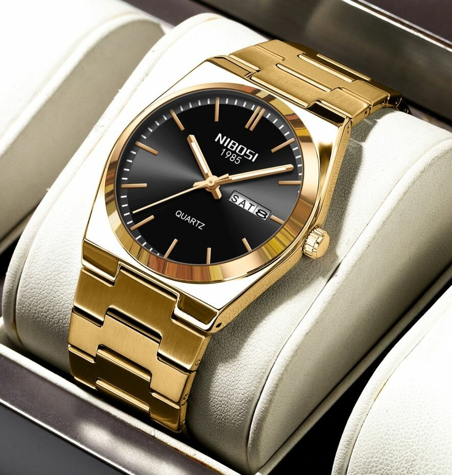 Découvrez l'élégance intemporelle de la montre NIBOSI 1985 en or. Dotée d'un affichage de la date, cette montre quartz est parfaite pour l'homme moderne. Idéale pour le bureau ou les soirées, elle apporte une touche de sophistication à votre poignet.