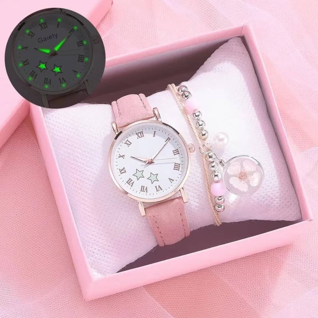 Découvrez cette élégante montre pour femme au bracelet rose avec un cadran lumineux étoilé, accompagnée de bracelets charmants. Idéale pour un style chic et moderne, elle ajoute une touche de glamour à n'importe quelle tenue. Parfaite pour des occasions spéciales ou pour un usage quotidien, elle vous apportera praticité et élégance.