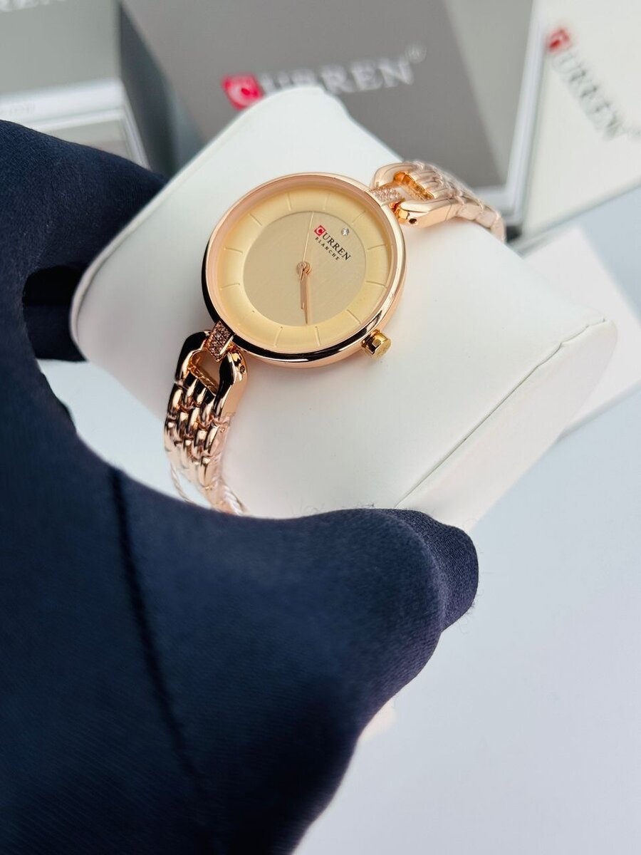 Découvrez cette élégante montre pour femme Curren au design raffiné. Dotée d'un bracelet en métal doré et d'un cadran clair, elle est parfaite pour compléter votre tenue. Un cadeau idéal ou un accessoire chic pour toutes les occasions.