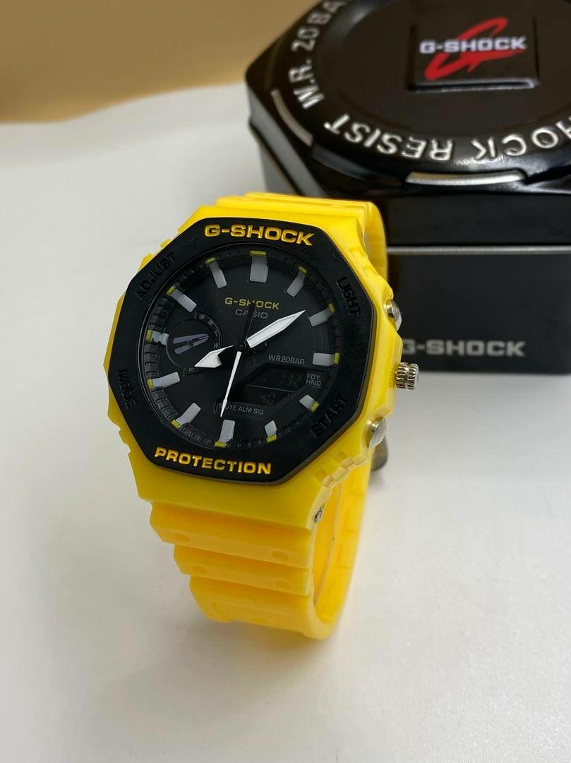 Découvrez la montre G-Shock résistante et stylée avec son bracelet jaune vibrant. Parfaite pour les amateurs de sport et de mode, elle offre une protection exceptionnelle contre les chocs. Un choix idéal pour une vie active!