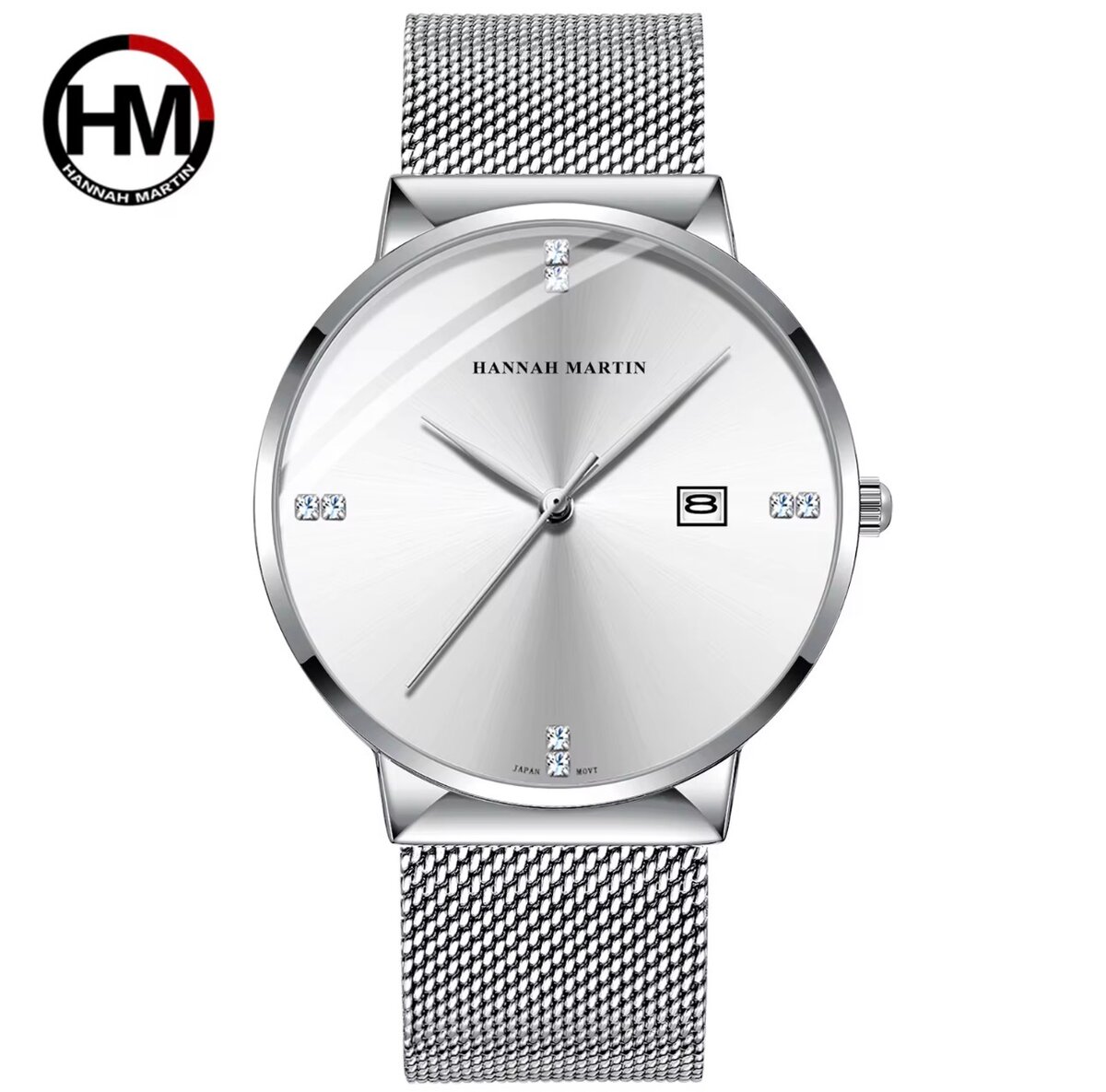 Montre Hannah Martin Factory Style minimaliste ЗАТМ étanche Mouvement à quartz japonais Calendrier Montres-bracelets pour hommes d'affaires